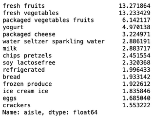 We are gonna take the users from each cluster, and look at the average products ordered by a customer for a given aisle.